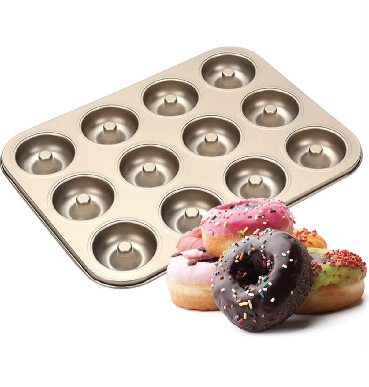 這款12連鋁製甜甜圈烘焙模具非常適合製作自製甜甜圈、迷你蛋糕及各式環形點心。耐用金屬材質受熱均勻,脫模輕鬆。
