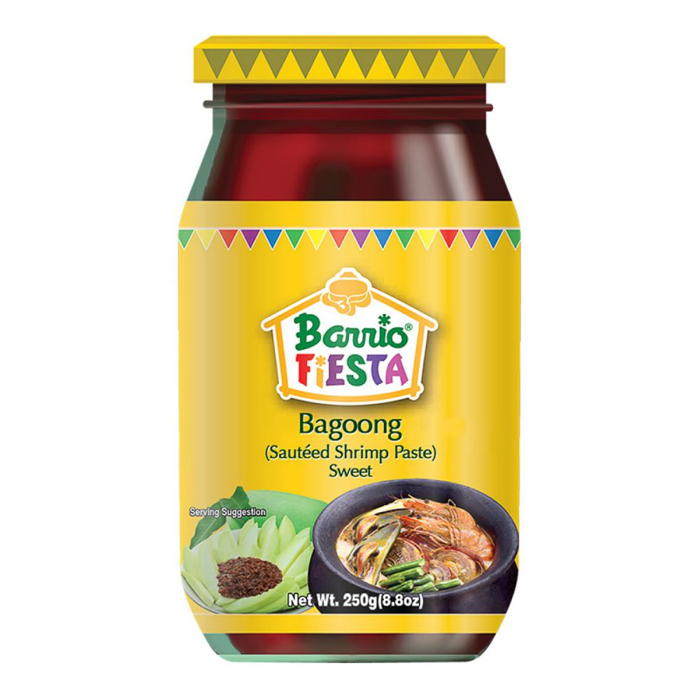Barrio Fiesta Sweet Bagoong is a rich shrimp paste that adds a delightful sweetness to dishes, perfect for enhancing traditional recipes or served as a condiment. Net Weight 250 g