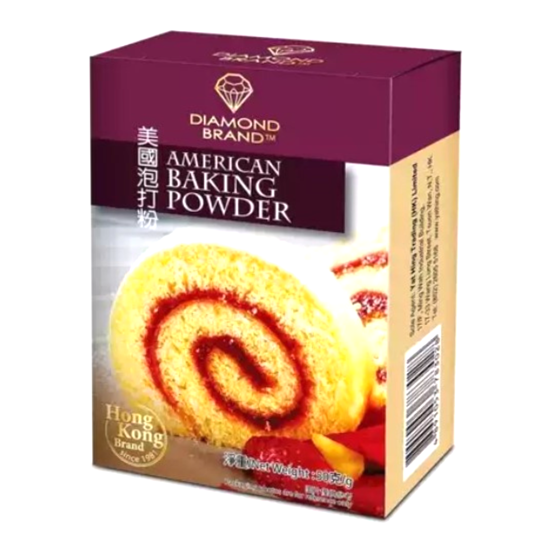 Diamond brand American baking powder is a reliable leavening agent ideal for baking, providing a consistent rise to cakes, cookies, and bread. Net Weight 50 g