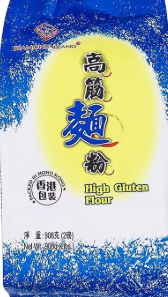 High Gluten Flour has more protein. Good for chewy bread and pizza. Packed in Hong-kong.