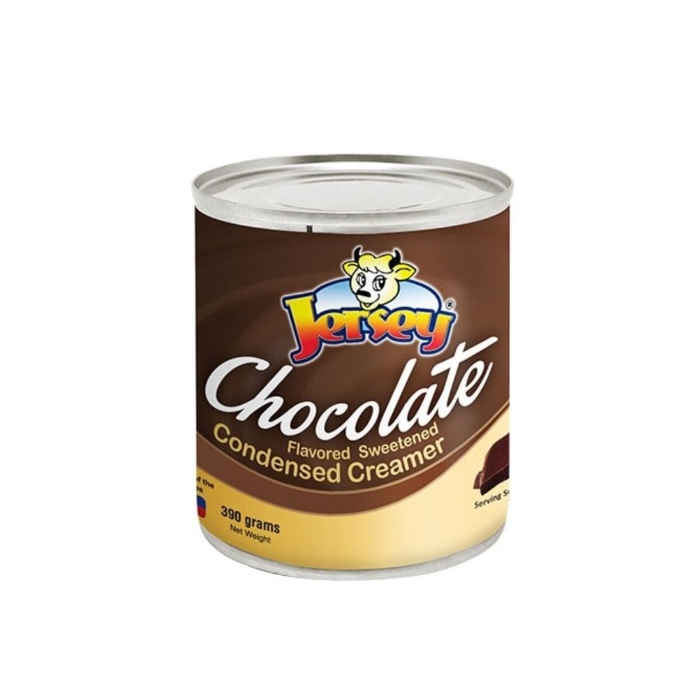 Jersey Chocolate Flavored Sweetened Condensed Creamer offers a rich chocolate taste, perfect for enhancing coffee, desserts, and baking, adding sweetness and creaminess to your favorite recipes. Net Weight 390 g